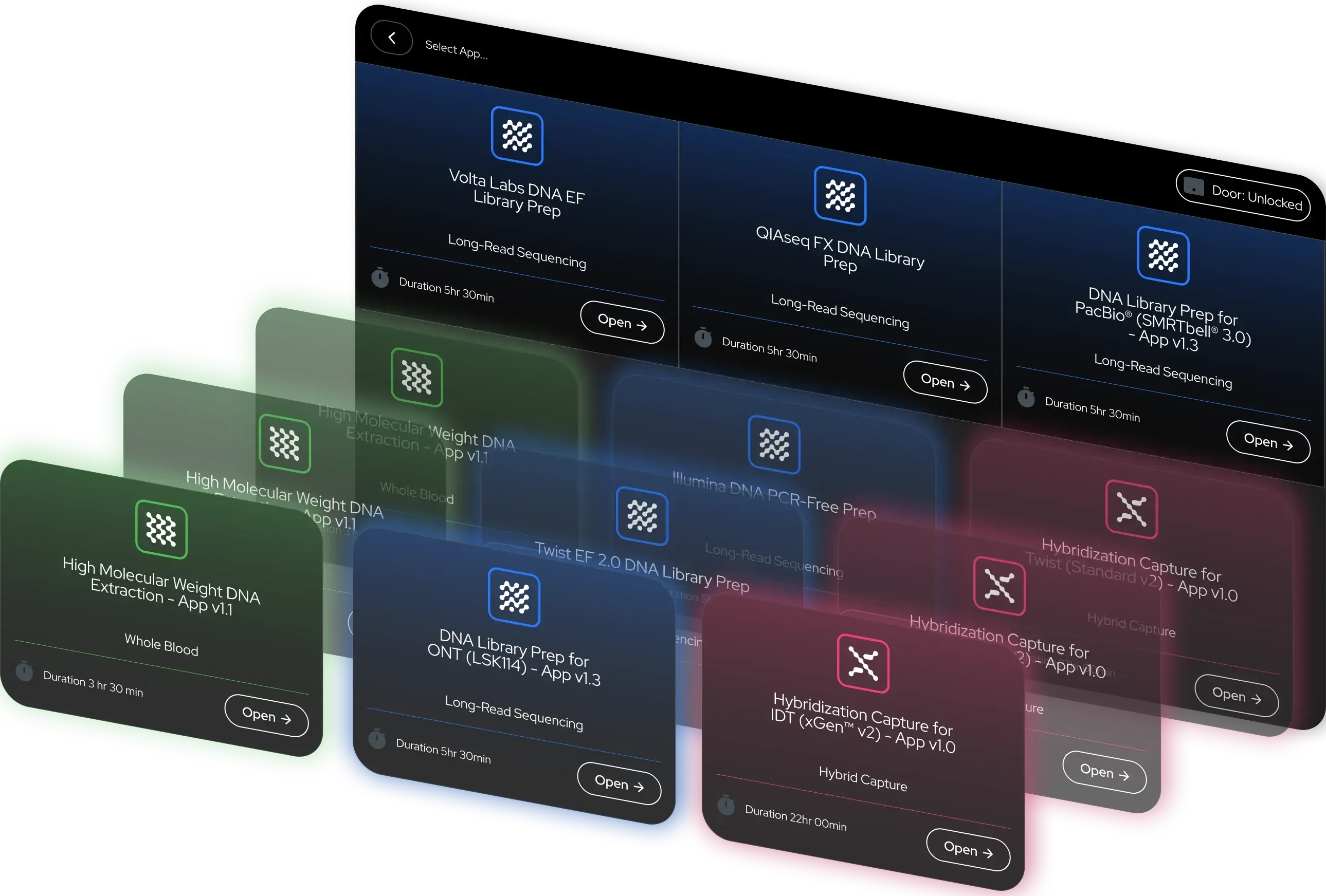 A clean, intuitive interface and guided workflow mean even users with minimal lab experience can run complex WGS preparations. Push-button simplicity—load your samples, select your app, and walk away.